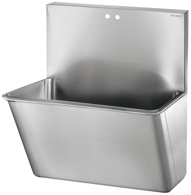 DELABIE sebészi bemosakodó vályú magas hátfallal, kevert vízre 1x1db 22mm csapfurattal, egy állásos 700mm, Hygiene+ dizájn, r.m. acél