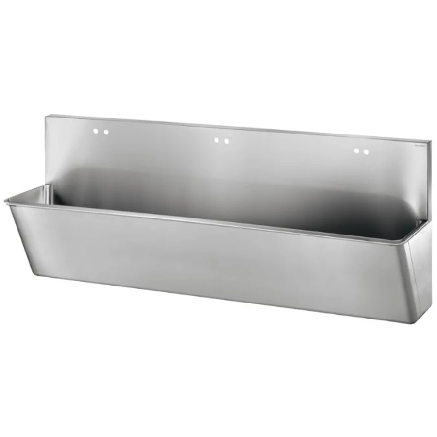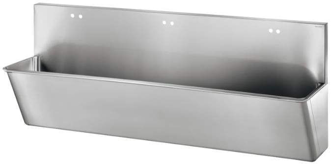 DELABIE sebészi bemosakodó vályú magas hátfallal, csapfurat nélkül, három állásos 2100mm, Hygiene+ dizájn, r.m. acél