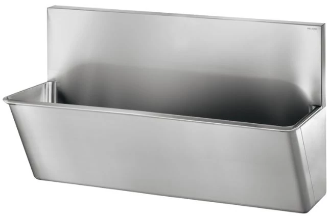 DELABIE sebészi bemosakodó vályú alacsony hátfallal, két állásos 1600mm, Hygiene+ dizájn, r.m. acél