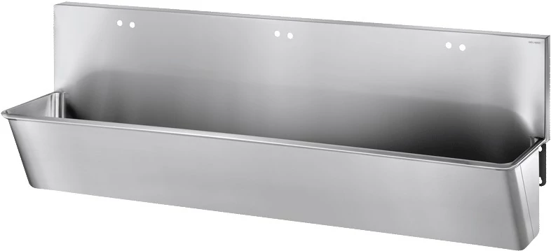DELABIE sebészi bemosakodó vályú magas hátfallal, csapfurat nélkül, három állásos 2100mm, r.m. acél