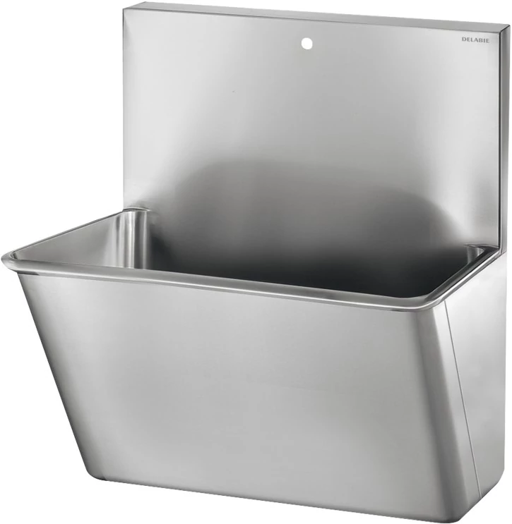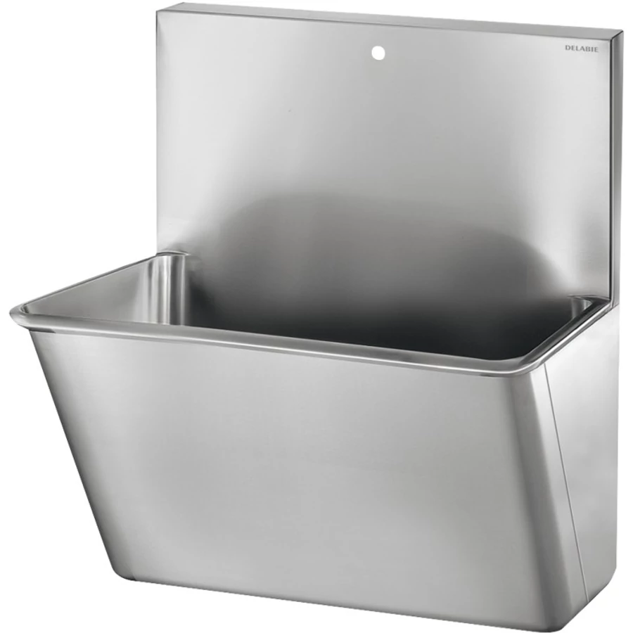 DELABIE sebészi bemosakodó vályú magas hátfallal, csapfurat nélkül, egy állásos 700mm, Hygiene+ dizájn, r.m. acél
