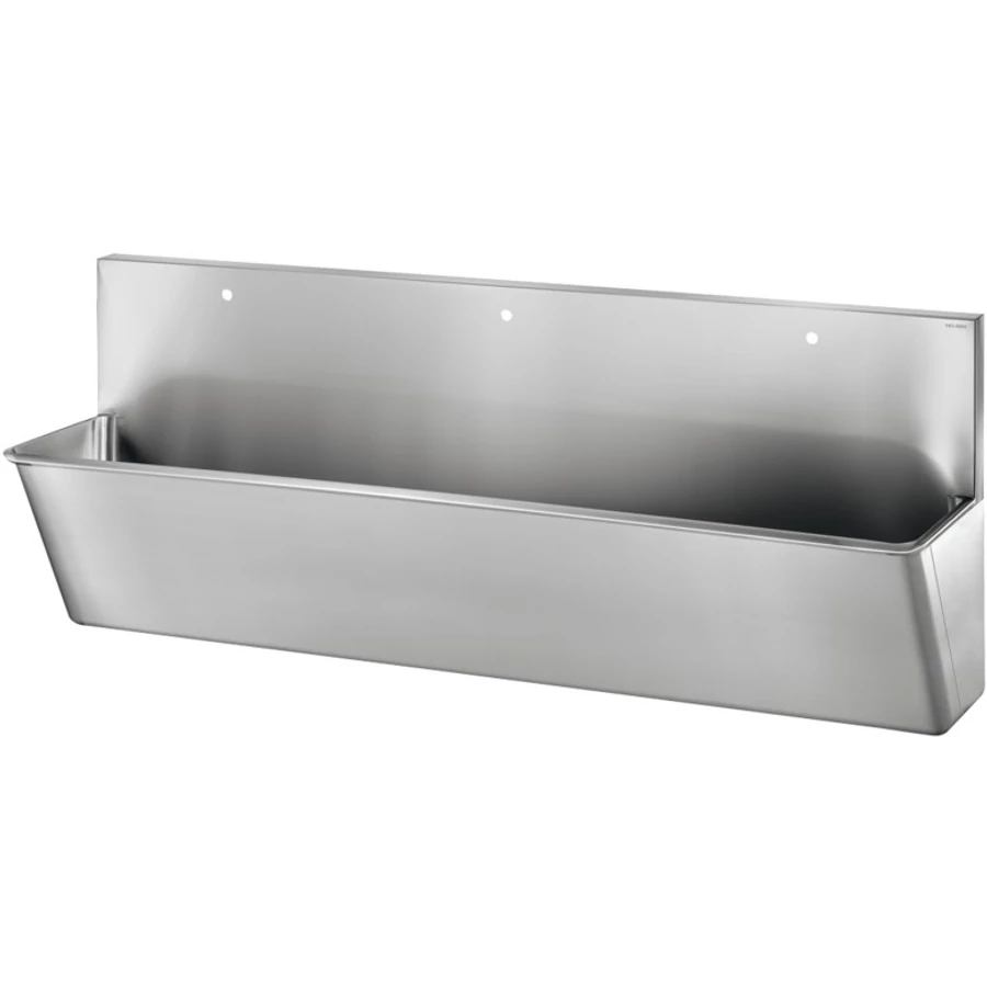 DELABIE sebészi bemosakodó vályú magas hátfallal, csapfurat nélkül, három állásos 2100mm, Hygiene+ dizájn, r.m. acél