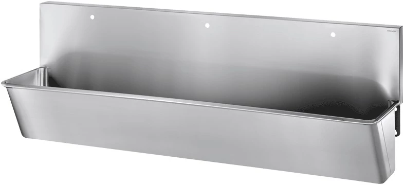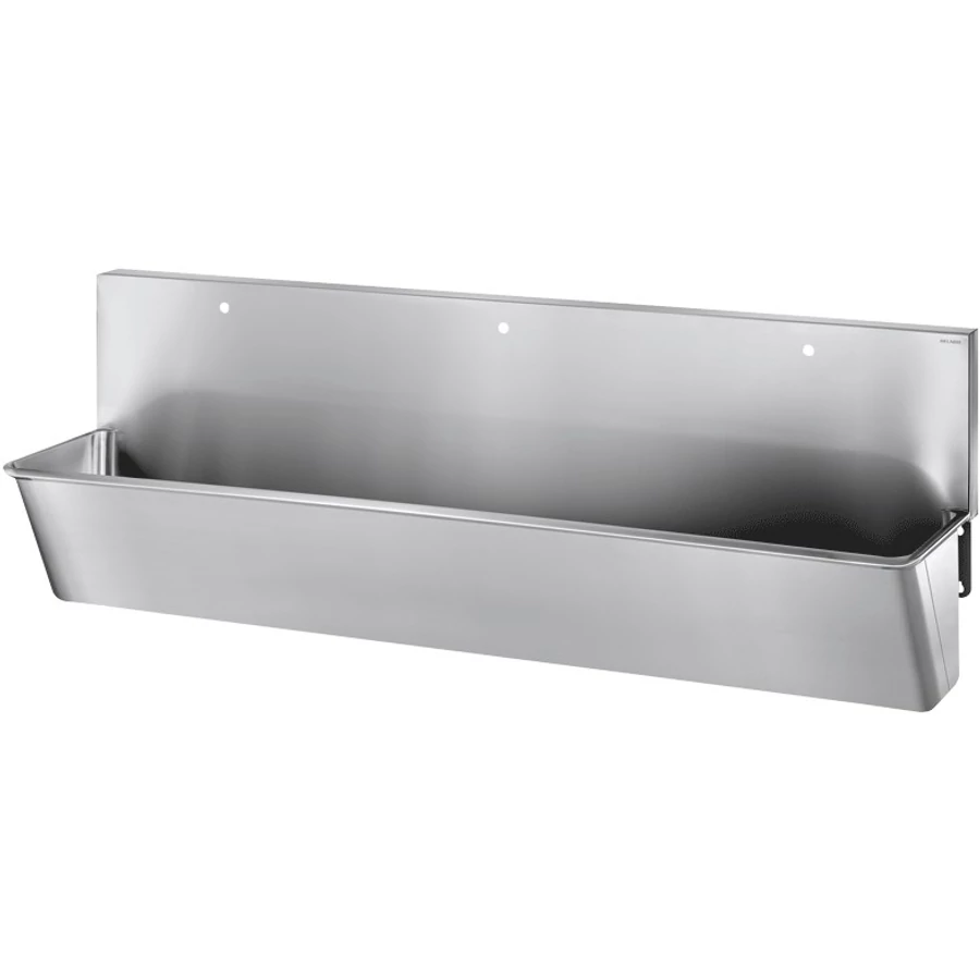 DELABIE sebészi bemosakodó vályú magas hátfallal, csapfurat nélkül, három állásos 2100mm, r.m. acél