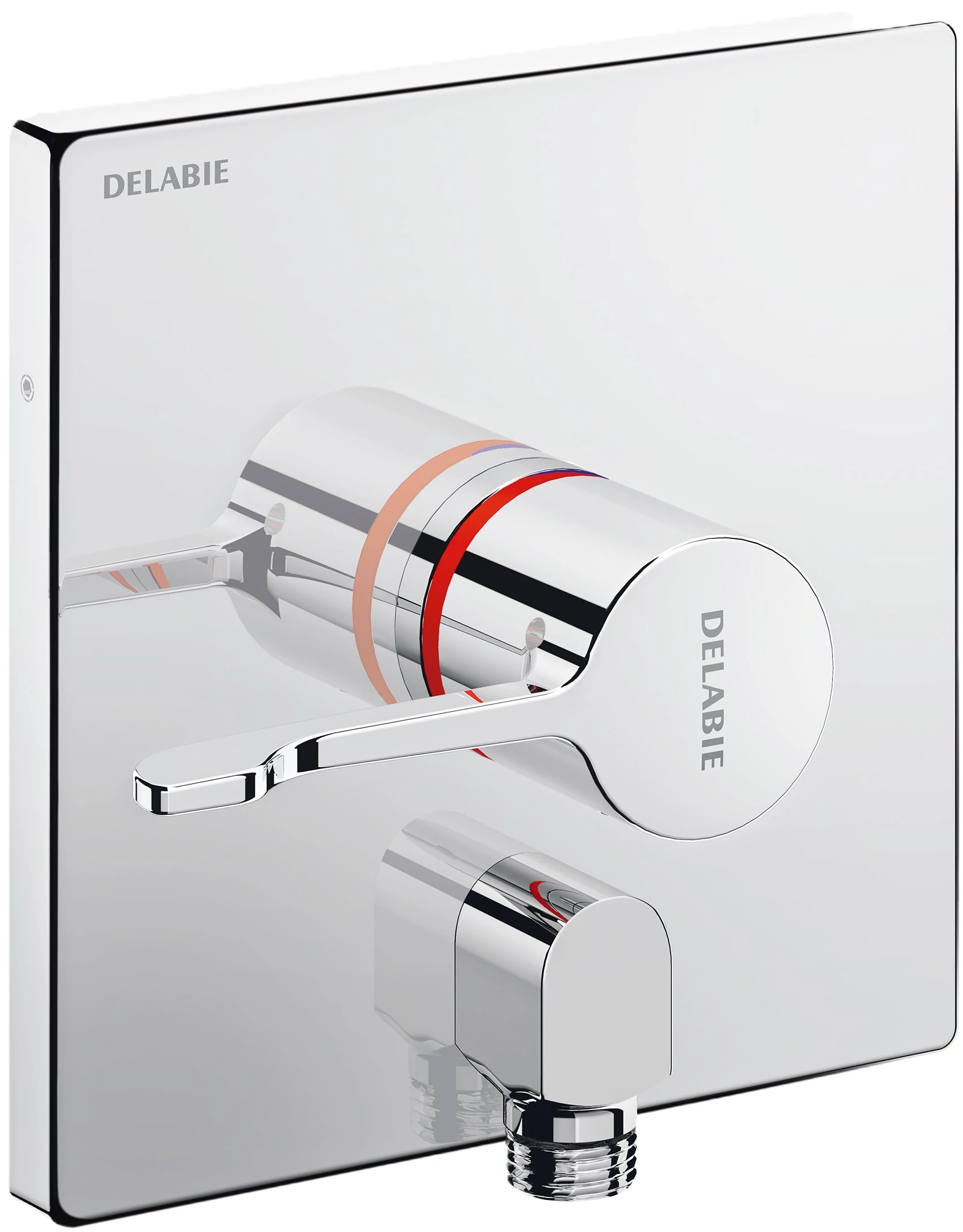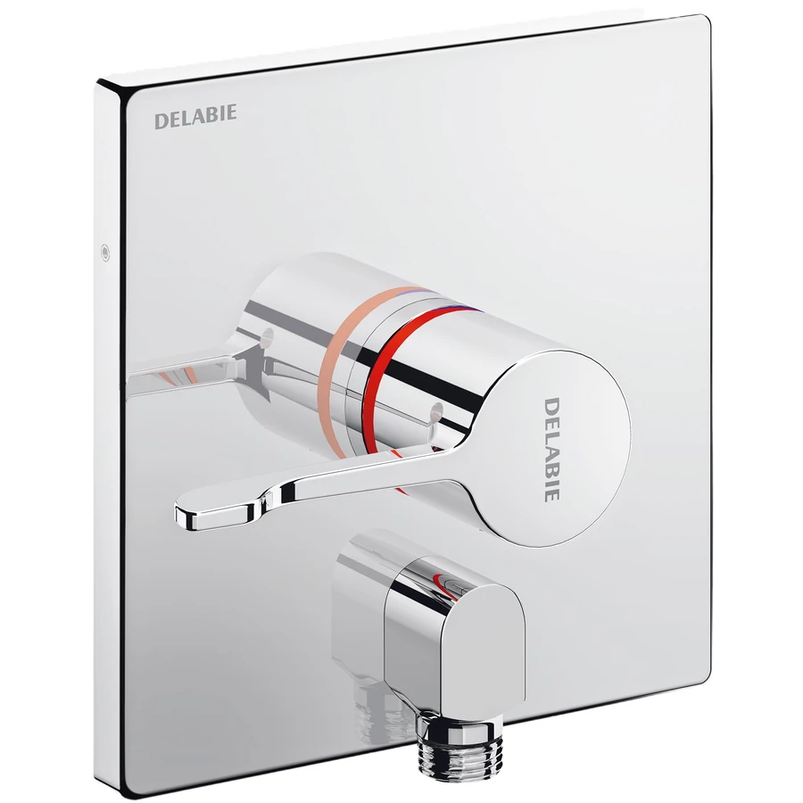 DELABIE SECURITHERM beépített, szekvenciális ERGO keverőkaros zuhany csaptelep előlap falon kívüli könyök vízkivezetéssel, visszacsapószelep nélküli, kit 2/2
