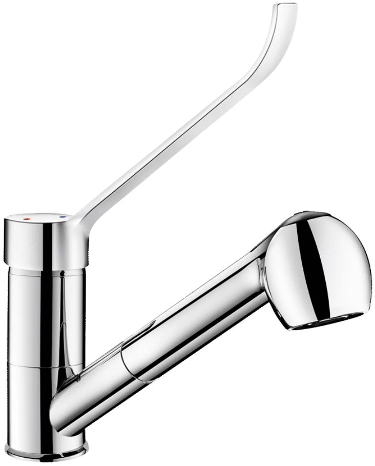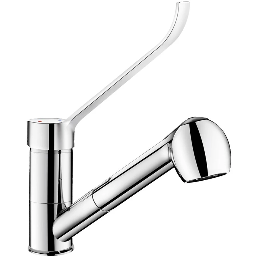 Lengő kifolyós és kihúzható fejes DELABIE SECURITHERM EP álló mosogató csaptelep forrázásgátlós nyomáskiegyenlítővel, hosszú karral, 7 liter/perc. DEL2211LEP