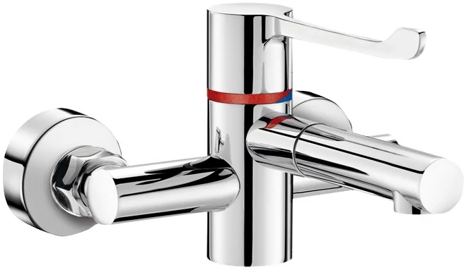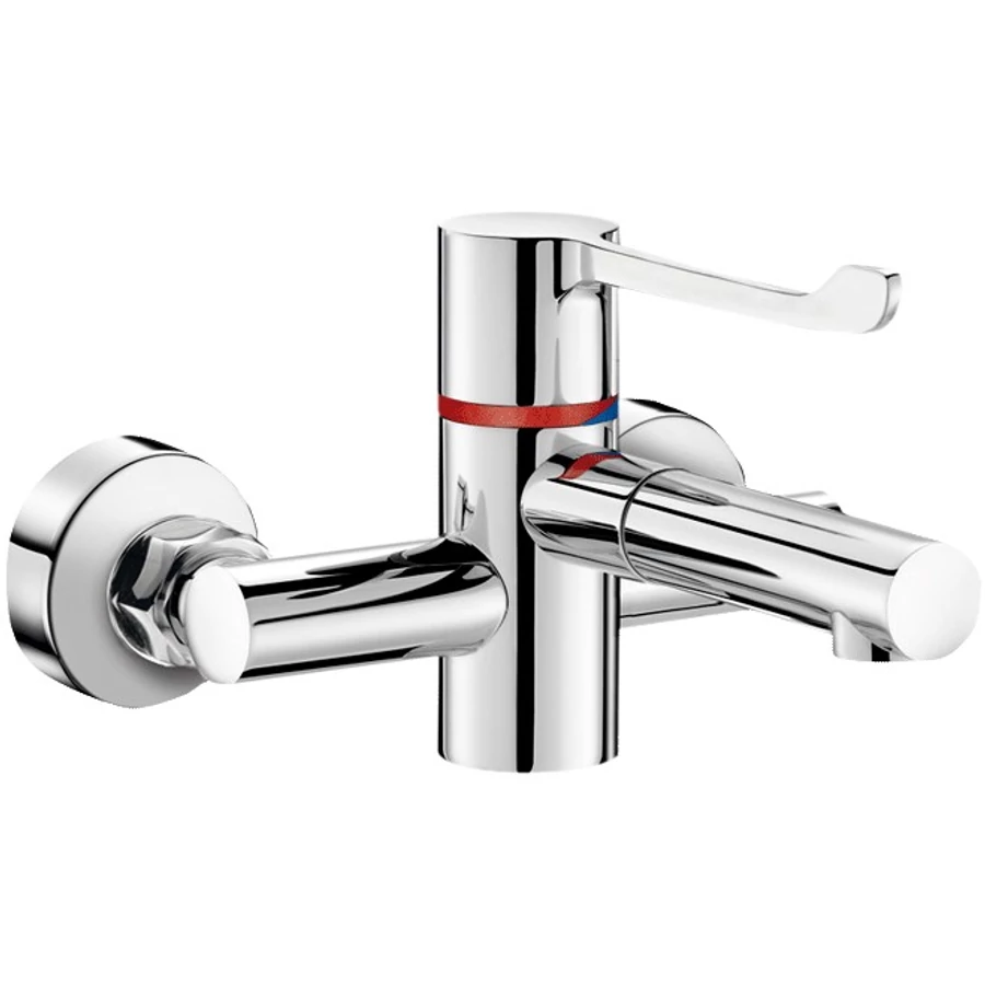 DELABIE SECURITHERM fali termosztatikus mosdócsap szekvenciális karral H-M vízre, műanyag BIOCLIP kifolyó, STOP/CHECK tárcsák