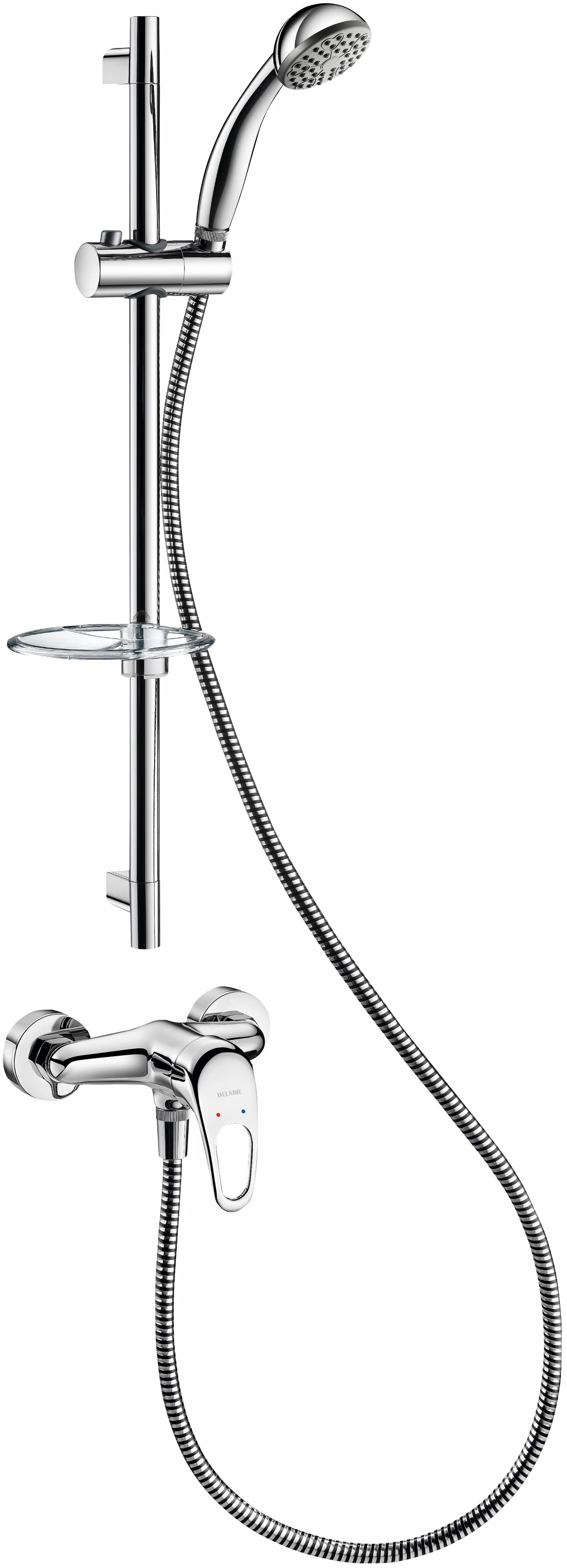 DELABIE SECURITHERM beépített, hosszított szekvenciális keverőkaros zuhany csaptelep előlap falon kívüli könyök vízkivezetéssel, visszacsapószelep nélküli, kit 2/2