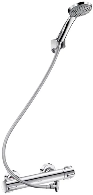 DELABIE SECURITHERM termosztatikus zuhanycsaptelep KIT forrázásgátlós keverővel, automatikus leeresztőszeleppel, kézizuhannyal és zuhanytartó rúddal, fali