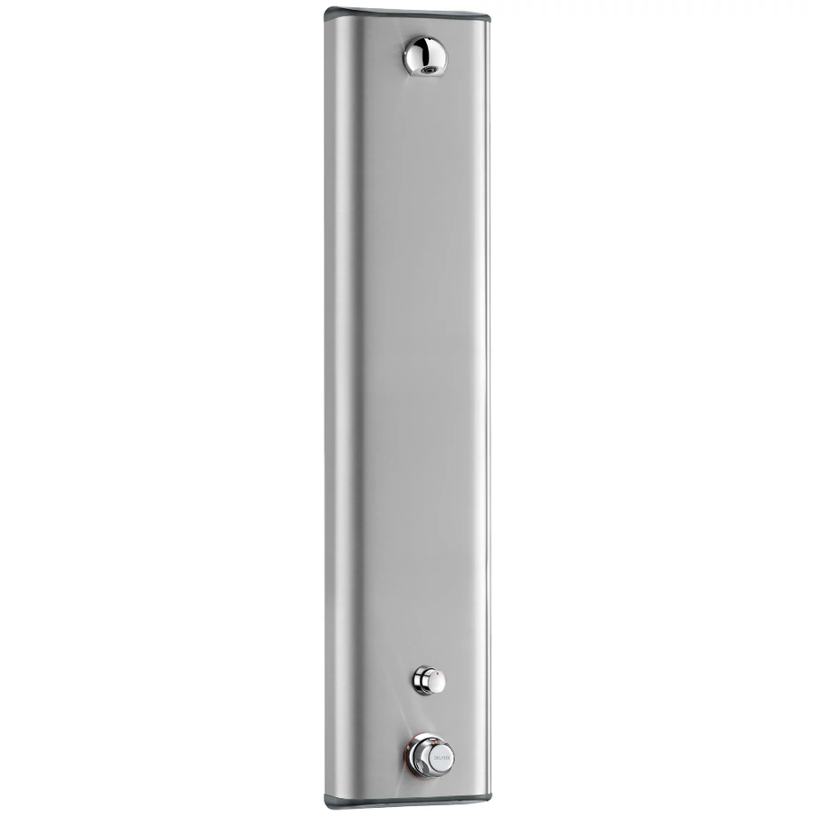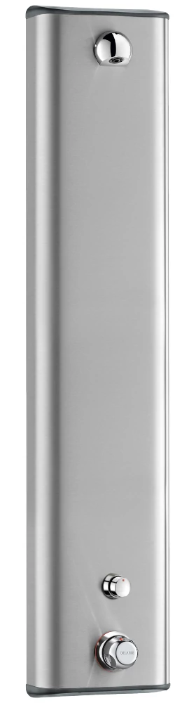 DELABIE nyomógombos zuhanyfal H-M vízre, beépített szappantartóval, r.m. acél, felső bekötés