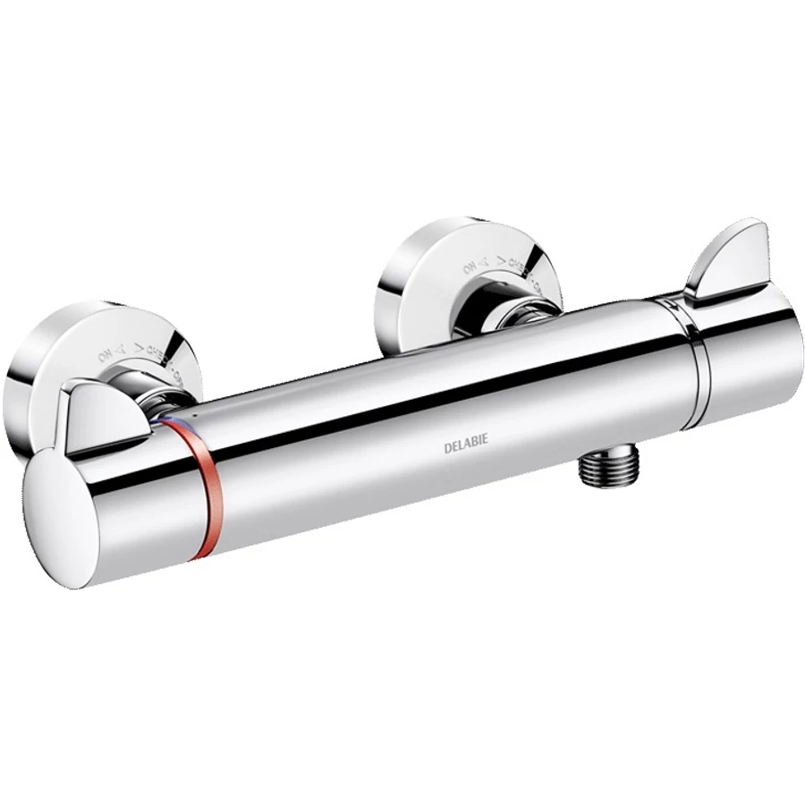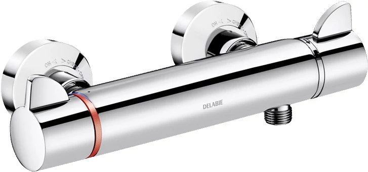 DELABIE SECURITHERM Securitouch termosztatikus zuhanycsap forrázásgátlós keverővel, ERGO tekerőfejek, falon kívüli, 9L/p, STOP/CHECK