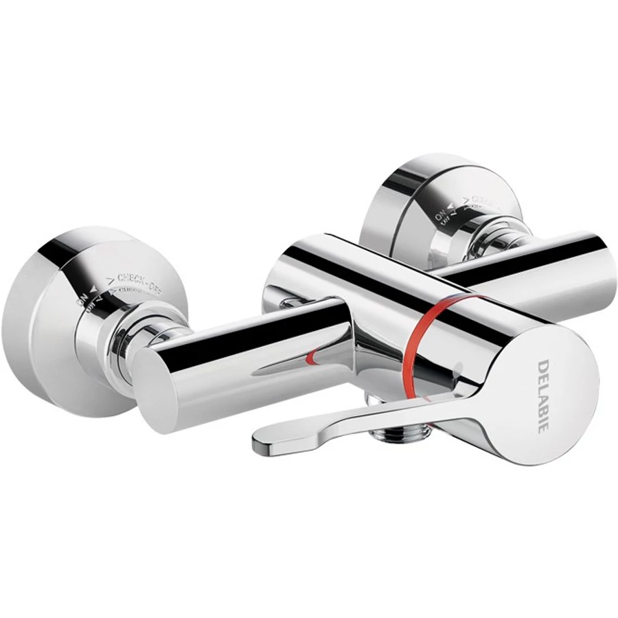 DELABIE SECURITHERM Securitouch termosztatikus zuhanycsap forrázásgátlós keverővel, ERGO tekerőfejek, falon kívüli, 9L/p, STOP/CHECK