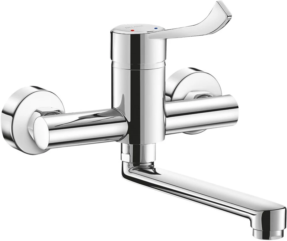 | Kialakítás | simára kiképzett belső csőfelülettel, mely segít megakadályozni a kórokozók letelepedését könnyen tisztítható orvosi karos, hosszított, higiénikus forma víztakarékos - a termék használatával a hagyományos mechanikus csaptelepekhez és öblítőszelepekhez képest jelentős vízmegtakarítás érhető el higiénikus ergonomikus |