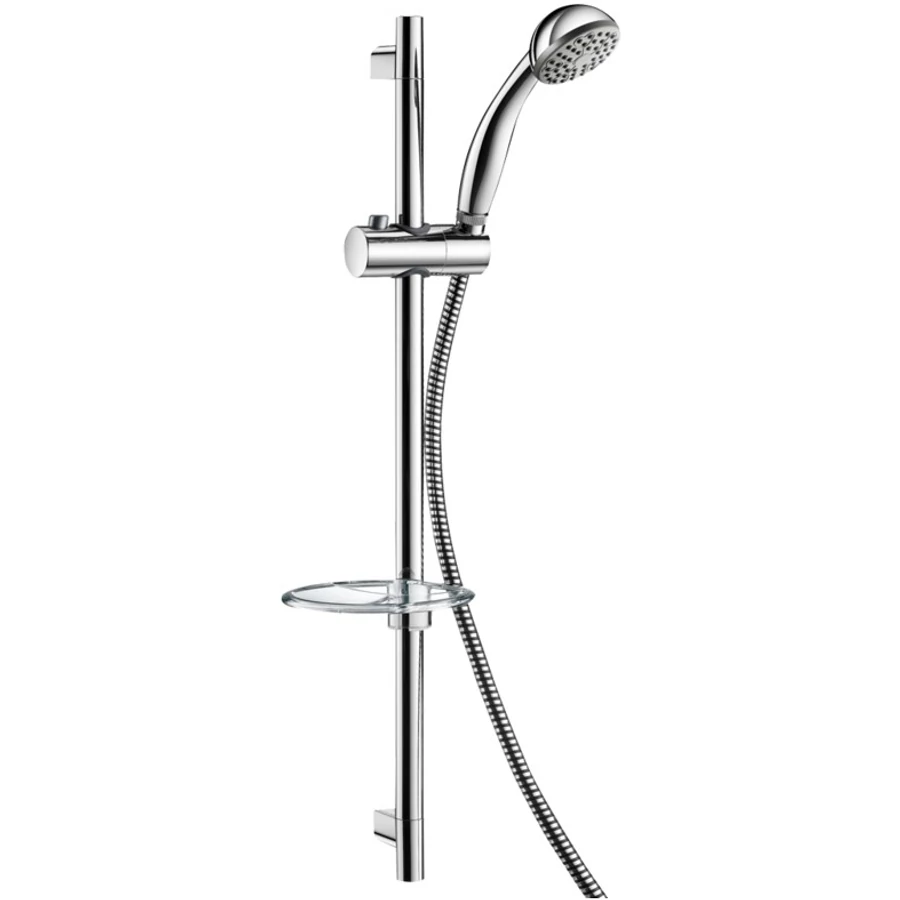 DELABIE zuhanytartó rúd H=700mm/D=22mm, csúsztatható és dönthető zuhanyrózsa tartó, szappantartó, r.m. acél