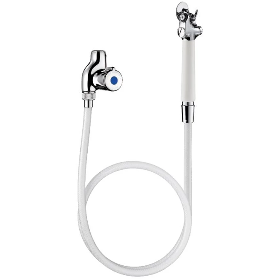 DELABIE fali nagykonyhai elő-öblítő zuhany r.m. acél rugóval megerősített antitorziós, fehér PVC tömlővel, mosogató csap nélkül