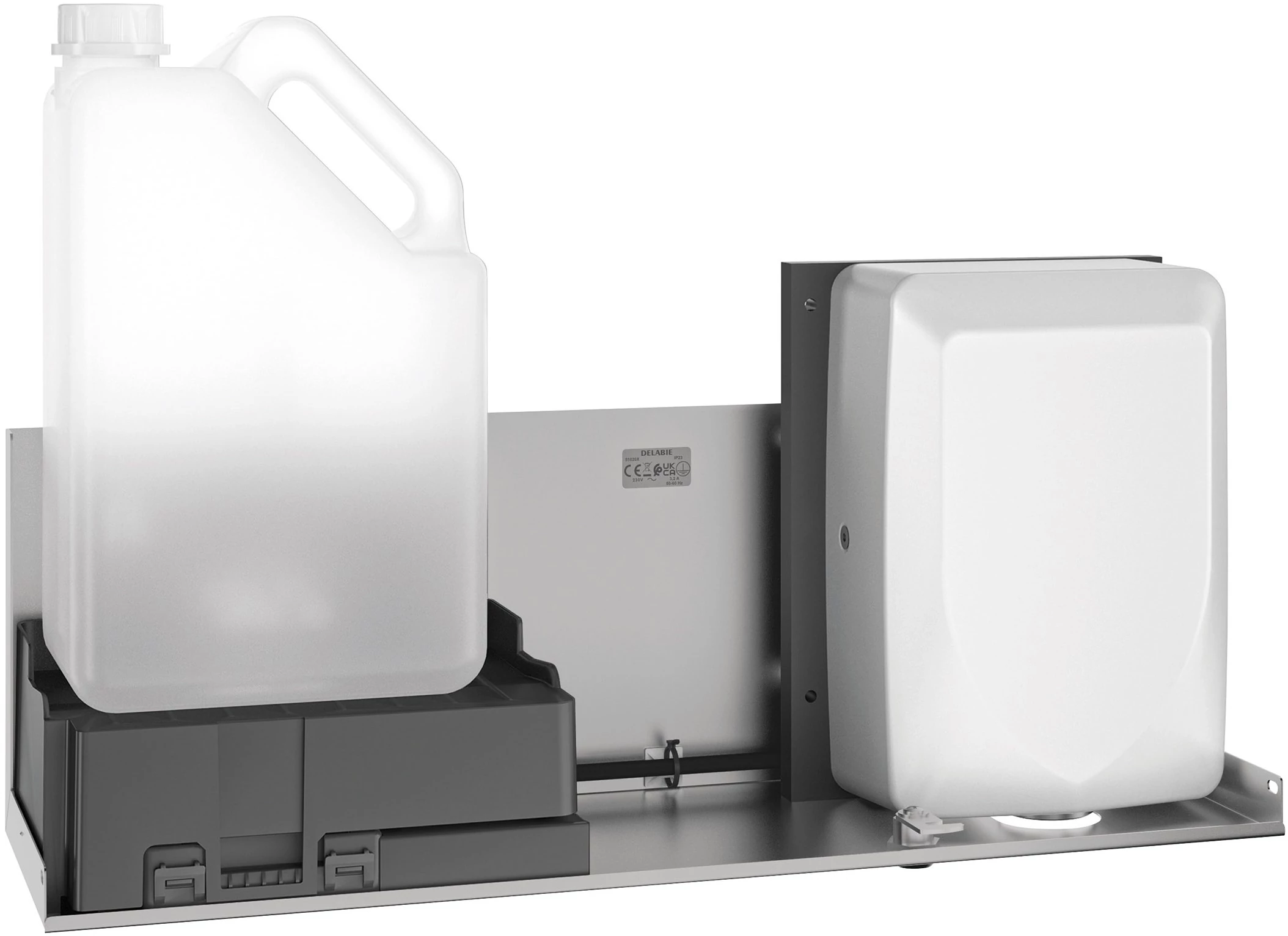 DELABIE szekrénybe integrálható, érintésmentes kézmosó szaniter egység tükrös kabinethez, 3 funkciós - csaptelep, szappanadagoló, kézszárító