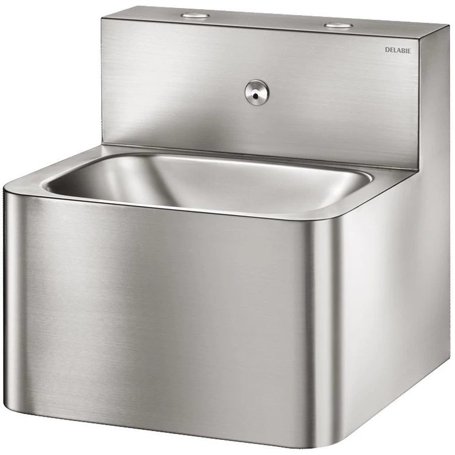 DELABIE TEK TC vandálbiztos kézmosó szervizfolyosós szereléshez, kevert vízre és ivóvízre külön infra érzékelőkkel, hálózati, r. m. acél