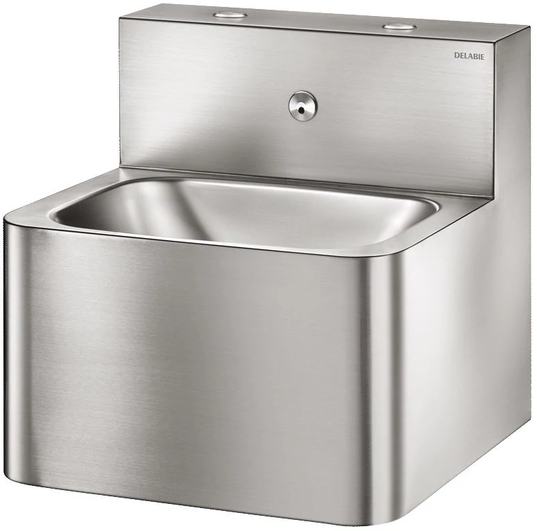 DELABIE TEK TC vandálbiztos kézmosó zárt testtel, fal mögötti szereléshez, nyomógombbal, csapfejjel, r.m. acél