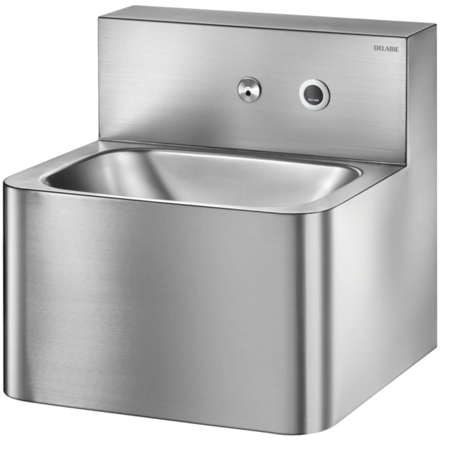 DELABIE TEK TC vandálbiztos kézmosó szervizfolyosós szereléshez, kevert vízre és ivóvízre külön infra érzékelőkkel, hálózati, r. m. acél