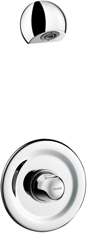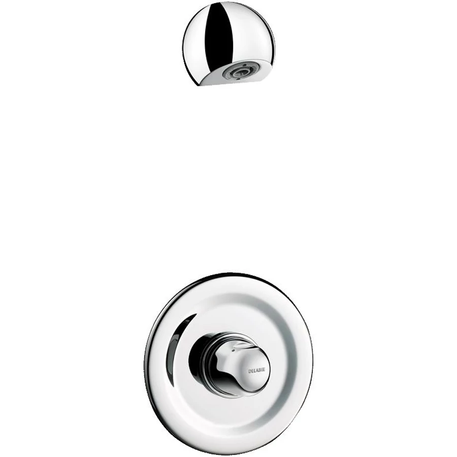 DELABIE TEMPOMIX beépített zuhanycsap fejbenkeverős nyomógombbal TONIC JET zuhanyfejjel, kerek fényes előlappal