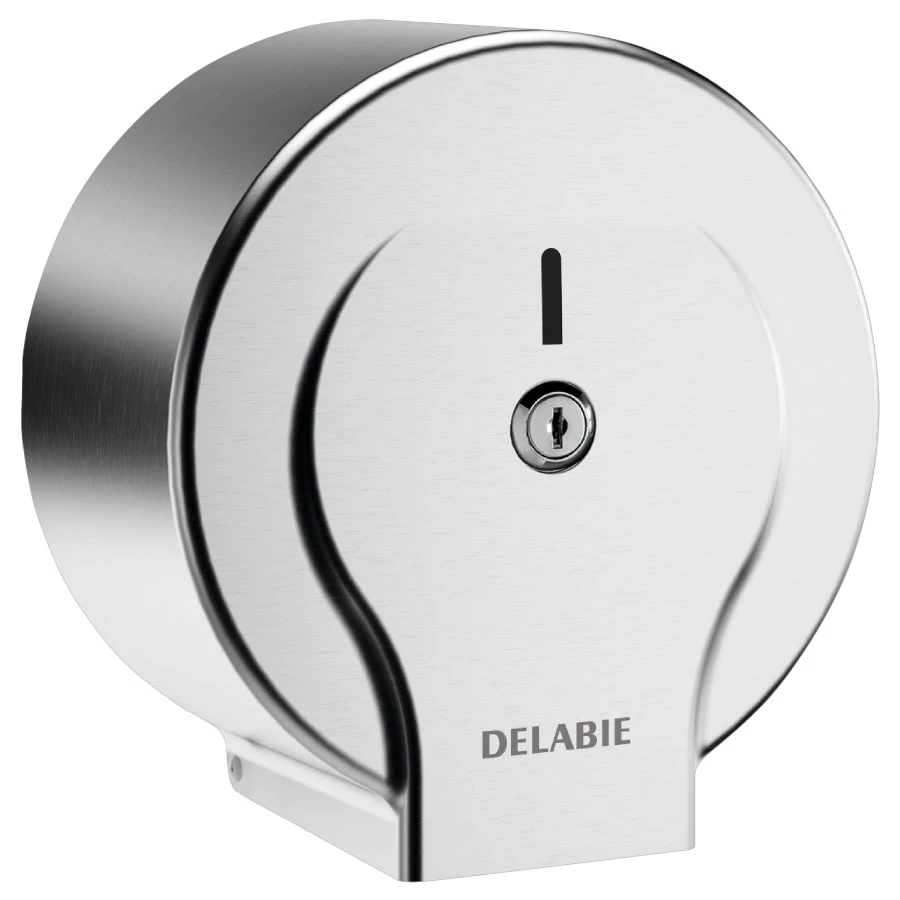 DELABIE ipari nagytekercses WC-papír adagoló 200m tekercsekhez, D=245mm, zárható, vandálbiztos r.m. acél ház, selyem