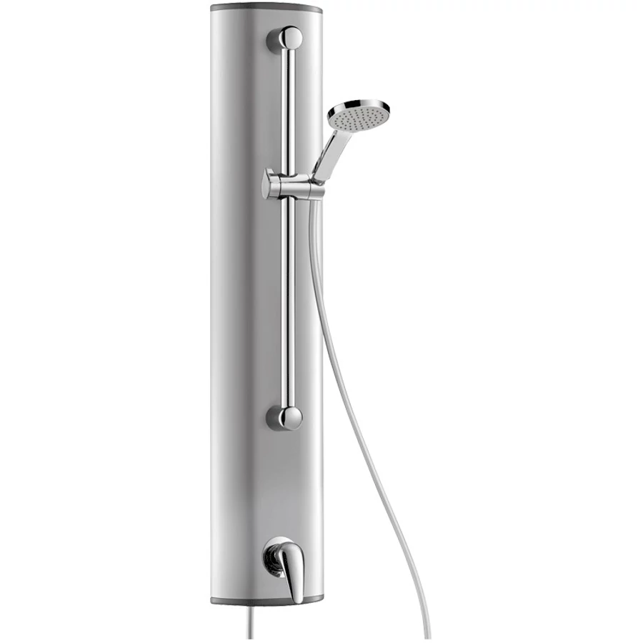 DELABIE zuhanyfal kézi zuhannyal, nyomógombos, kevert vízre, alumínium, felső bekötés