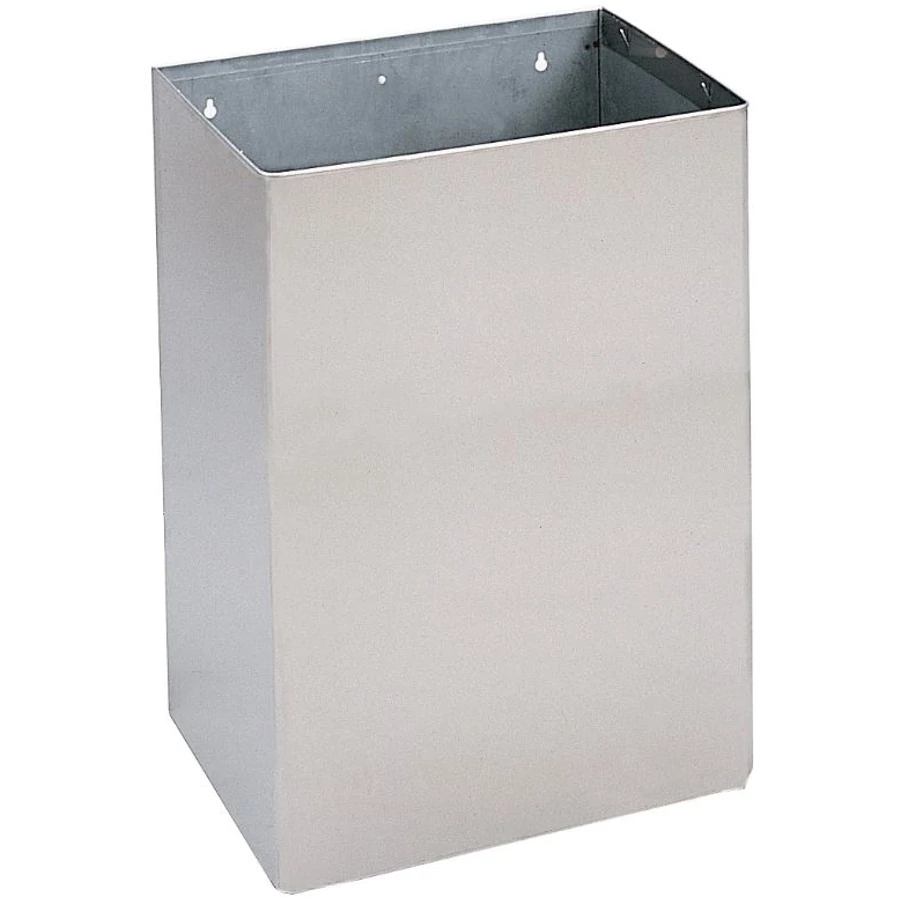 Green Clean fali fedő nélküli, 45 literes hulladékgyűjtő rozsdamentes acél, matt. Vandálbiztos, ellenálló kivitel, amely nagy anyagvastagságának köszönhető.
