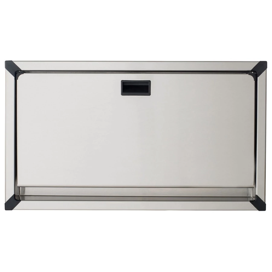 Vandálbiztos beépített lehajtható pelenkázó rozsdamentes acél testtel, ABS belsővel, vízszintes, selyem