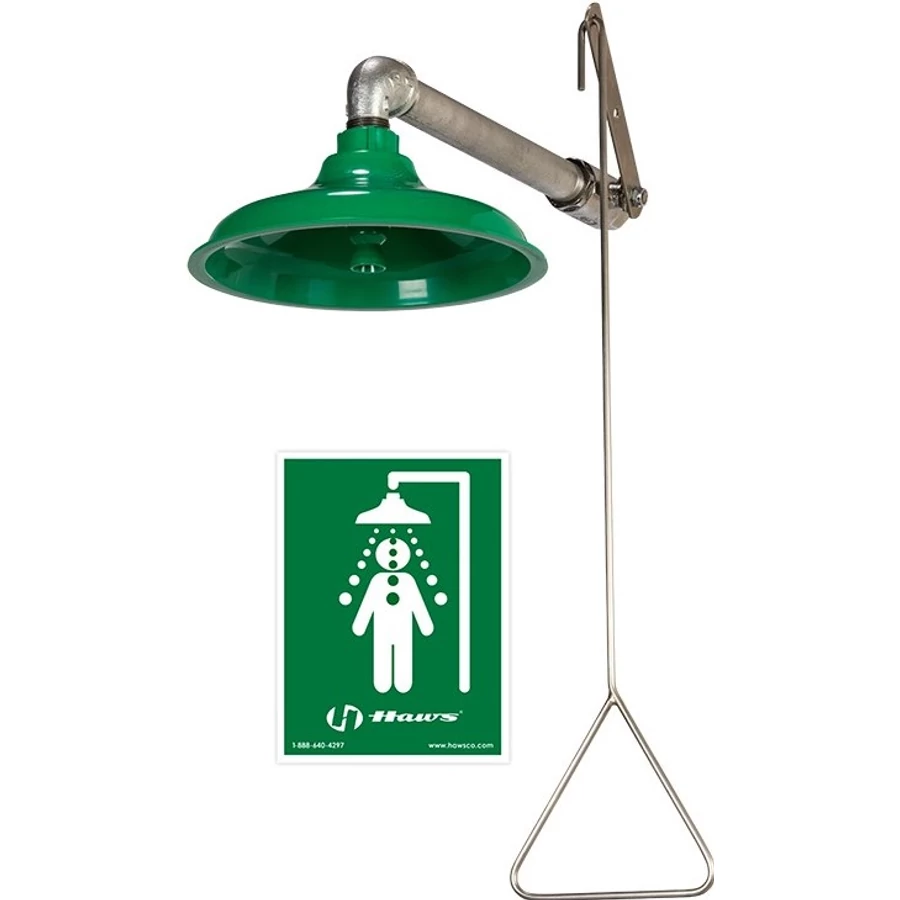 Mennyezeti sürgősségi vészzuhany egység AXION öblítőfejjel, húzókaros működtetéssel, ABS műanyag tállal