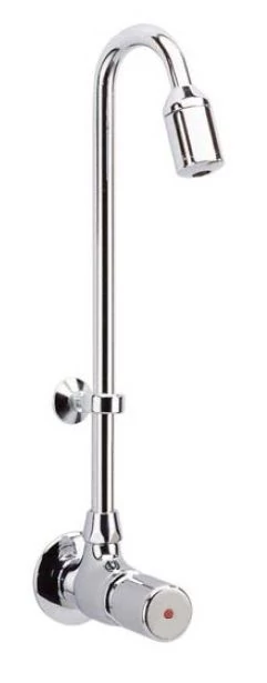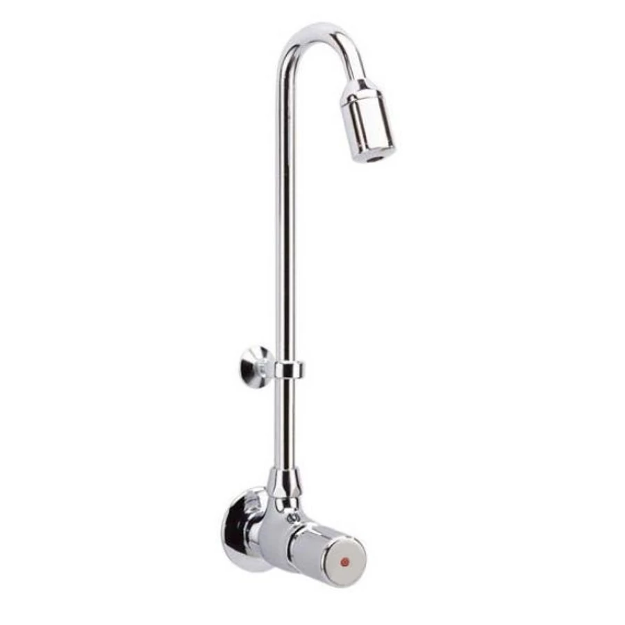 Falon kívül szerelt nyomógombos zuhanycsaptelep, fix felszálló csővel, zuhanyfejjel, kevert vízhez, állítható (0-50 sec.) időztéssel