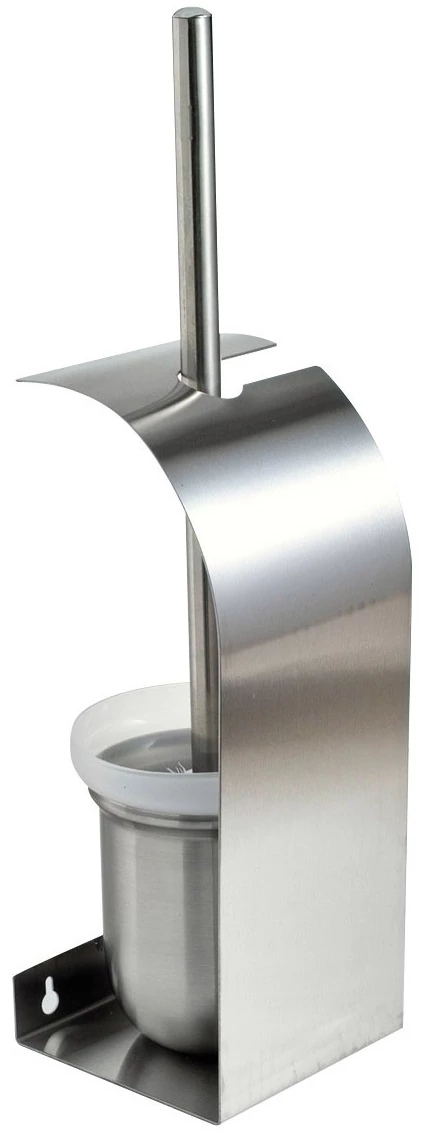 Falra szerelhető fém WC-kefe tartó, műanyag kefe és tartály, fényes nyél, lopásbiztos rögzítésű AISI304 r.m. acél ház, selyem