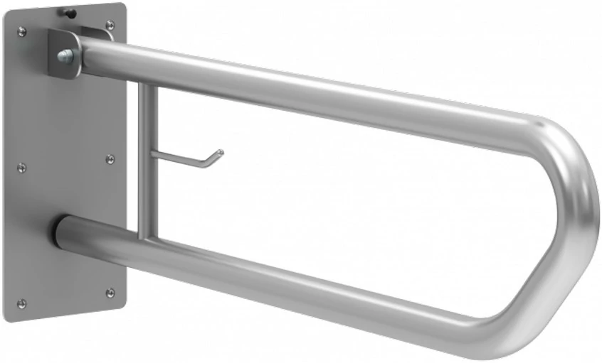 A függőlegesen felhajtható rozsdamentes acél kapaszkodó a közösségi mellékhelyiségek falára rögzíthető. A selyem matt borítás elegáns megjelenést kölcsönöz a mellékhelyiségeknek.