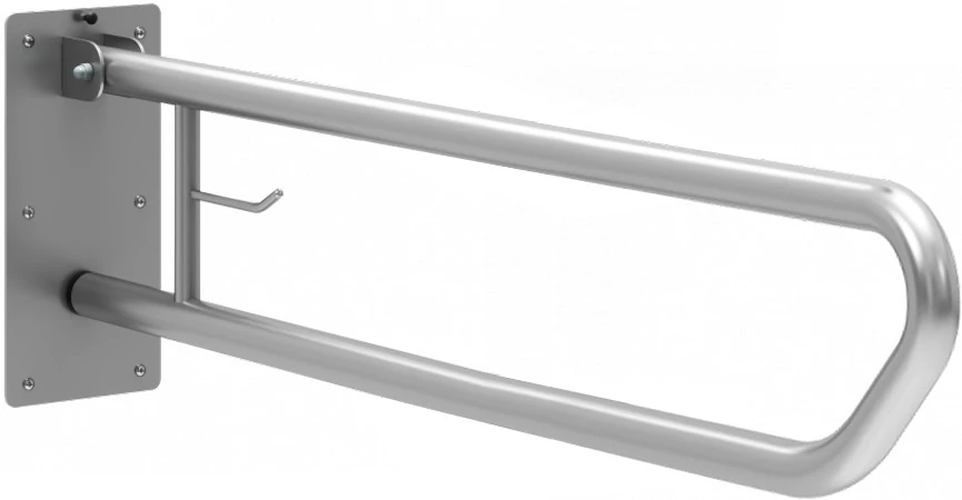 A függőlegesen felhajtható rozsdamentes acél kapaszkodó a közösségi mellékhelyiségek falára rögzíthető. A selyem matt borítás elegáns megjelenést kölcsönöz a mellékhelyiségeknek.