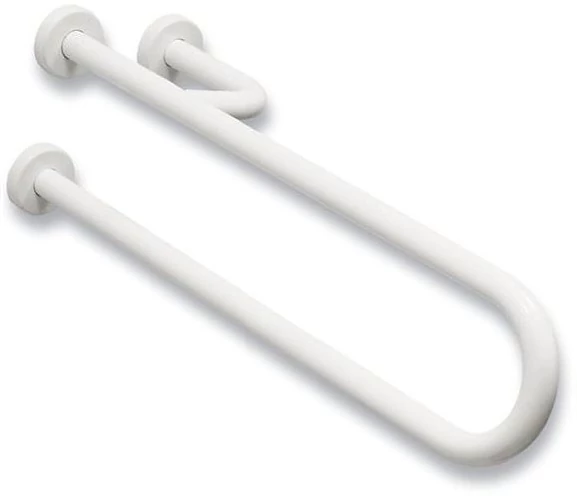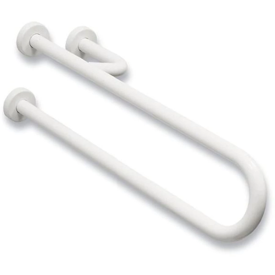 Fix U alakú kapaszkodó, jobb oldali megerősítéssel, szemből nézve a WC bal oldalára kerül, acél, fehér, takarótárcsával, 600 mm