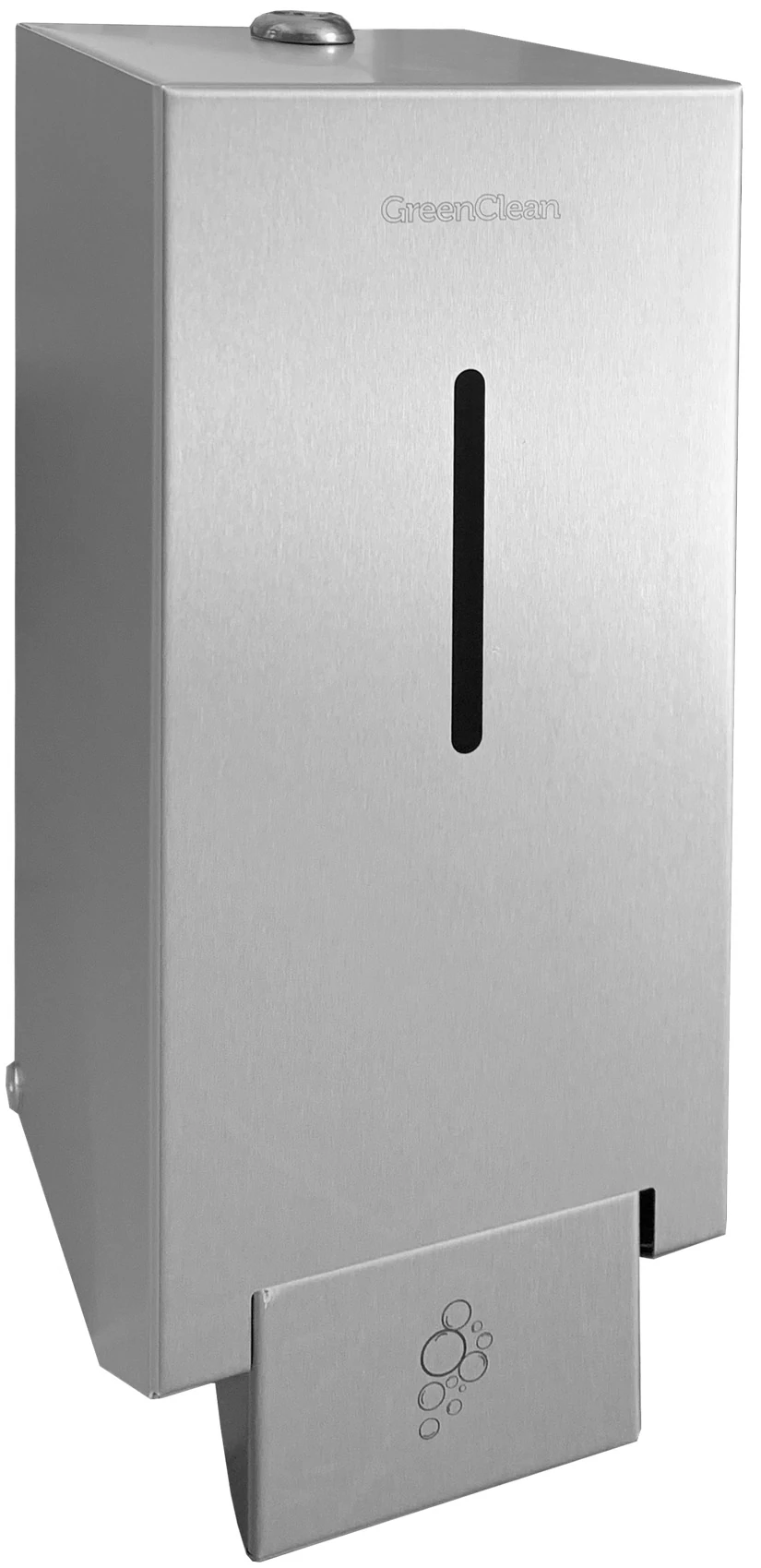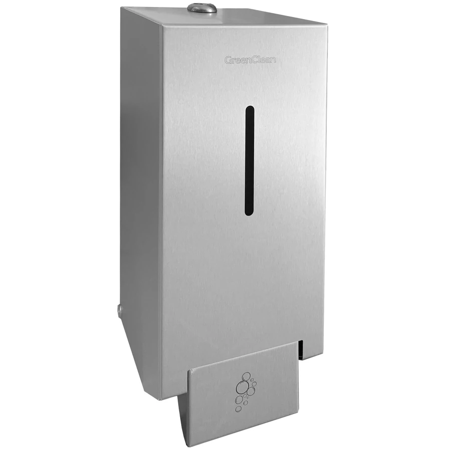 Vandálbiztos nyomógombos habszappan adagoló, zárható, műanyag tartály, r.m. acél, selyem, 1L