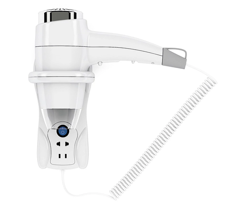 A GCPPM14 típusú hajszárító ideális szállodai fürdőszobák számára. A készülék színe fehér, anyaga pedig ABS műanyag. ON-OFF biztonsági kapcsolóval és 2 sebességi fokozattal rendelkezik, teljesítménye 1400W. Nagy méretű fürdő esetén 2 db készülék elhelyezése javasolt. Ideális felhelyezési magassága 130-150 cm között.