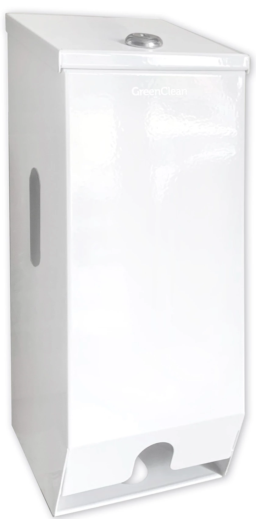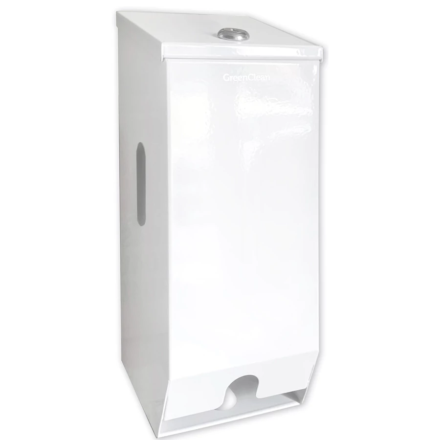 Kistekercses WC-papír adagoló 2 tekercshez, függőleges, szögletes, felülről tölthető, zárható, r.m. acél, fényes