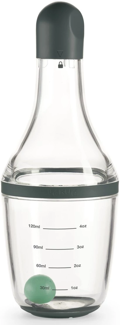 beépített kiöntő fej kényelmes, egykezes használat - egyetlen kattintással kinyithatja a fedelet öntésszabályozó rendszerének köszönhetően jobban szabályozhatja a kifolyó folyadék mennyiségét az igényeinek megfelelően csöpögésmentes beépített csöpögésgátló rendszer: nincs több felesleges csepp elég néhány mozdulattal összeráznia a tartályt, és a benne lévő speciális golyó azonnal krémes, homogén öntetté dolgozza össze a hozzávalókat a precízen záródó szilikon tetőnek köszönhetően bátran rázhatja az edényt – az öntet nem szökik ki, konyhája pedig makulátlan marad az integrált mérőskála garantálja, hogy minden alapanyag a tökéletes arányban kerüljön az öntetbe, legyen szó olajról, ecetről vagy szirupokról |