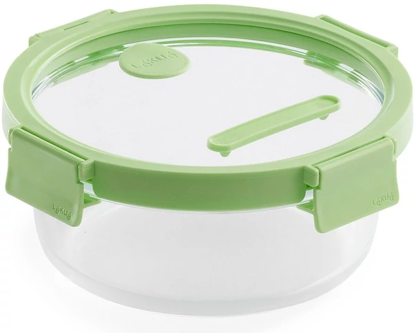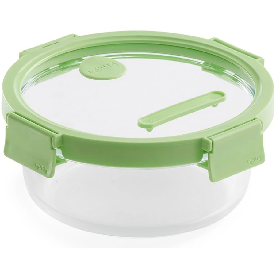 A Lékué Glass Container Round (950 ml, zöld) a kerek sorozat legnagyobb tagja, amely a stílust és a nagyvonalú tárolókapacitást ötvözi. Ez a prémium boroszilikát üvegből készült edény bőséges, majdnem egy literes űrtartalmával ideális választás teljes főételek, sűrű levesek vagy családi méretű saláták frissen tartásához. A légmentesen záródó üvegfedél és az intelligens dátumjelölő rendszer garantálja, hogy konyhája ne csak rendezett, de tudatosan vezetett is legyen.