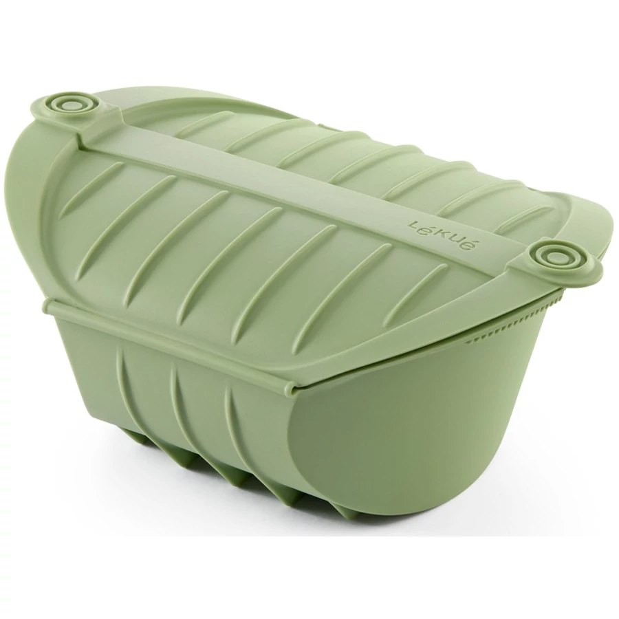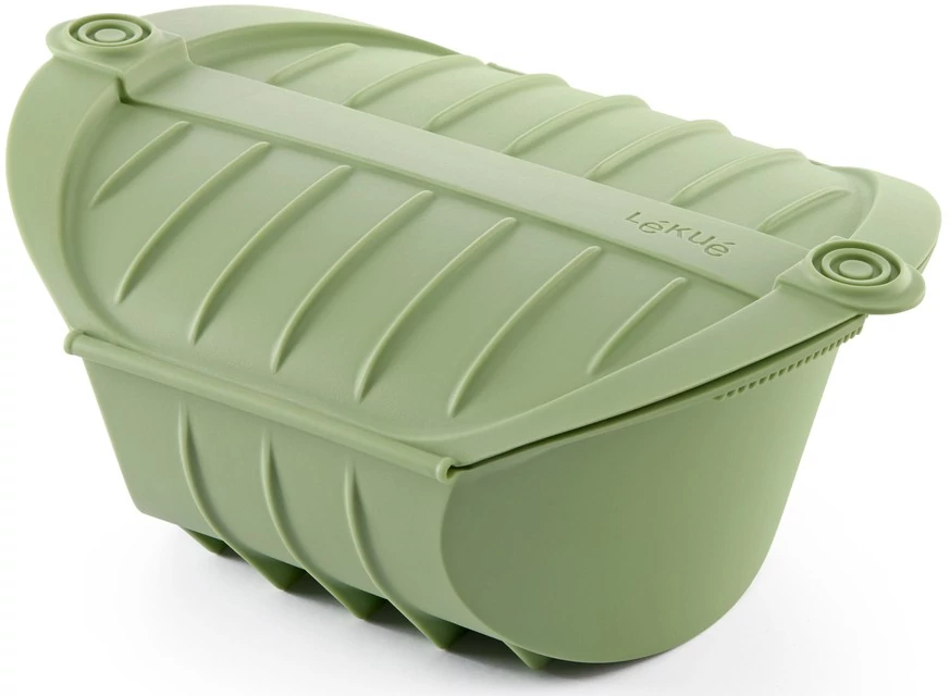 A Lékué tálcával ellátott gőzölőedénye (zöld) a népszerű Steam Case sorozat legnagyobb tagja, amelyet kifejezetten családok számára vagy tudatos heti étel-előkészítéshez (meal prep) terveztek. Ez az eszköz a tradicionális, kíméletes „papillote” párolást ötvözi a modern konyha gyorsaságával: segítségével 10-12 perc alatt varázsolhat az asztalra tápanyagdús, szaftos fogásokat az egész családnak.