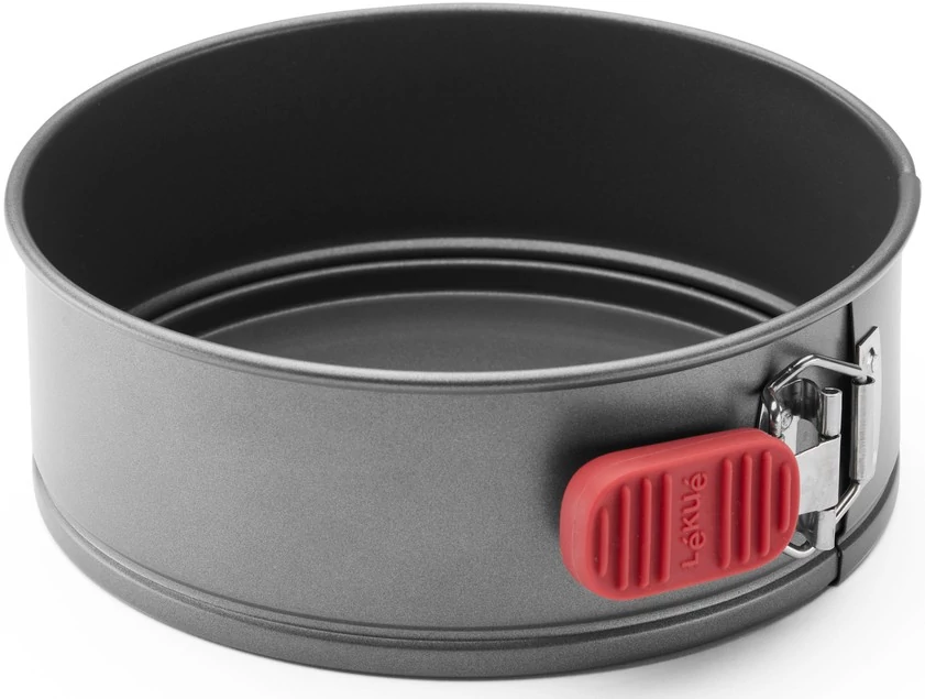 | Kialakítás | kerek forma könnyen tisztítható szilikon fogantyúi csúszásgátlóak, kényelmes és biztonságos fogást biztosítanak nyitható oldalfal: praktikus csatos mechanizmus, amely lehetővé teszi a palást egyszerű eltávolítását, így a sütemény sérülésmentesen emelhető ki a formából kivehető tortaalj - a sütemény egyszerű és esztétikus kiemelése érdekében egyenletes hőeloszlás - a homogén átsülés és a precíz végeredmény érdekében tapadásmentes bevonat: speciális felületkezelés, amely megakadályozza az étel letapadását, és lehetővé teszi a zsiradékmentes sütést |