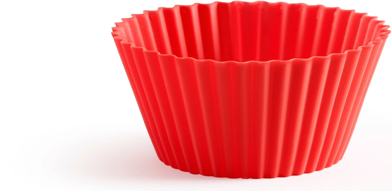 Lékué Silicone Muffin Cups szilikon muffin sütőforma szett, 12db-os, D=70mm, újrafelhasználható, piros – A szenvedélyes sütés kelléke