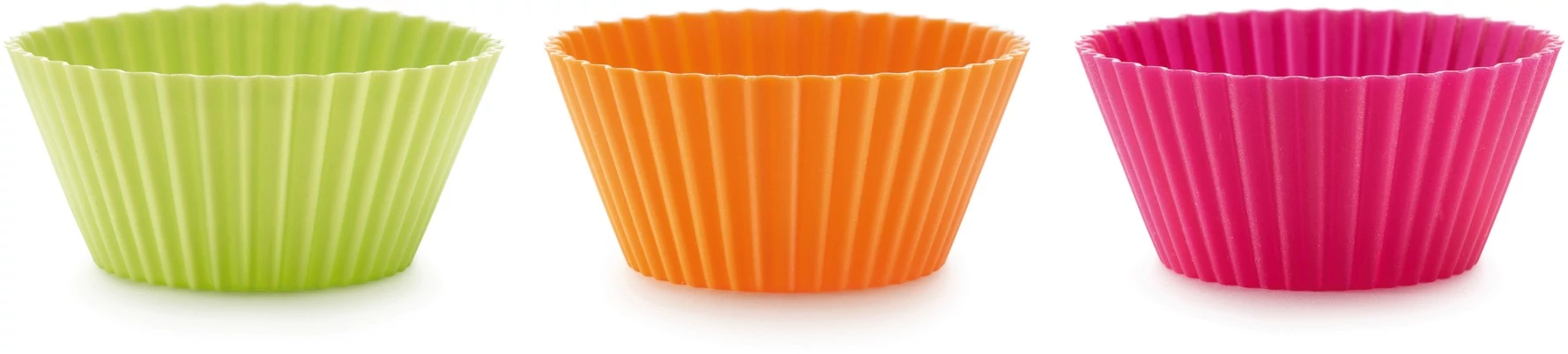 Lékué Silicone Muffin Cups szilikon muffin sütőforma szett, 12db-os, D=70mm, újrafelhasználható, többszínű – A környezetbarát sütés színes élménye
