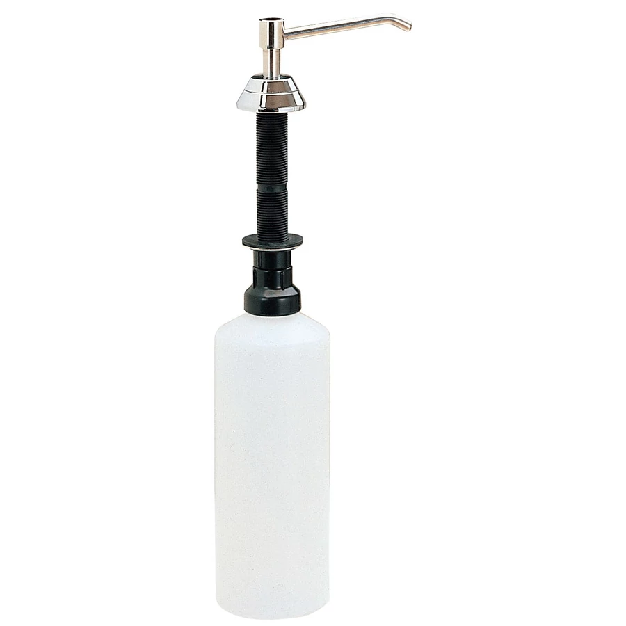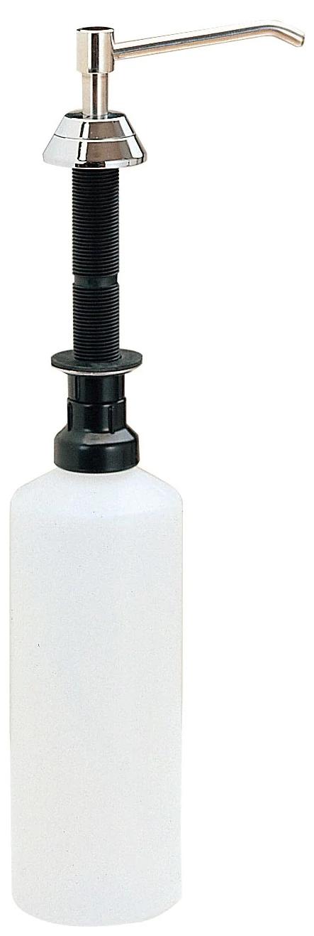 Mosdópultba süllyesztett pumpás szappanadagoló, krómozott fejjel, 0,5L r.m. acél tartállyal, L=150mm hajlított csőrrel