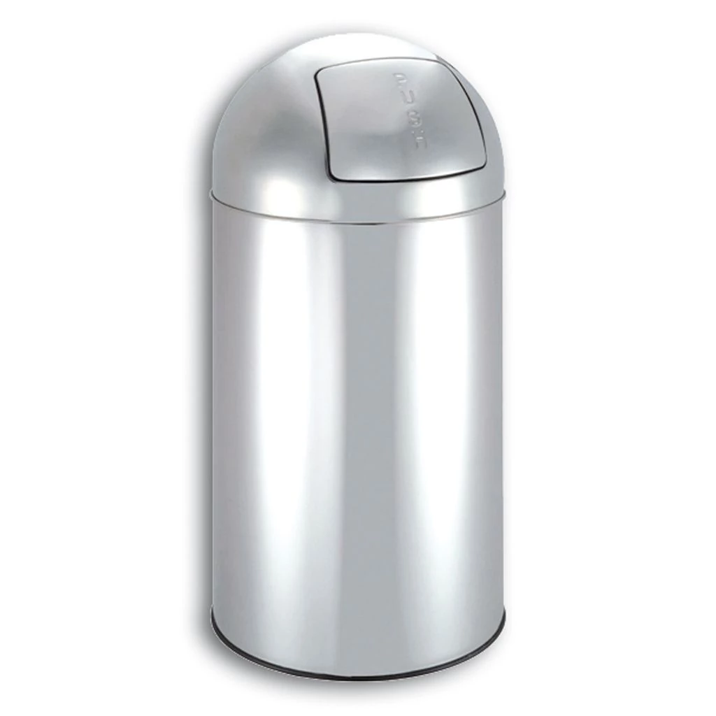 Fedél nélküli kerek hulladékgyűjtő, 30 liter, szinterezett acél, ezüst