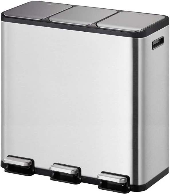 Szelektív hulladékgyűjtő 3 rekesszel, 150 liter, r.m. acél, matt
