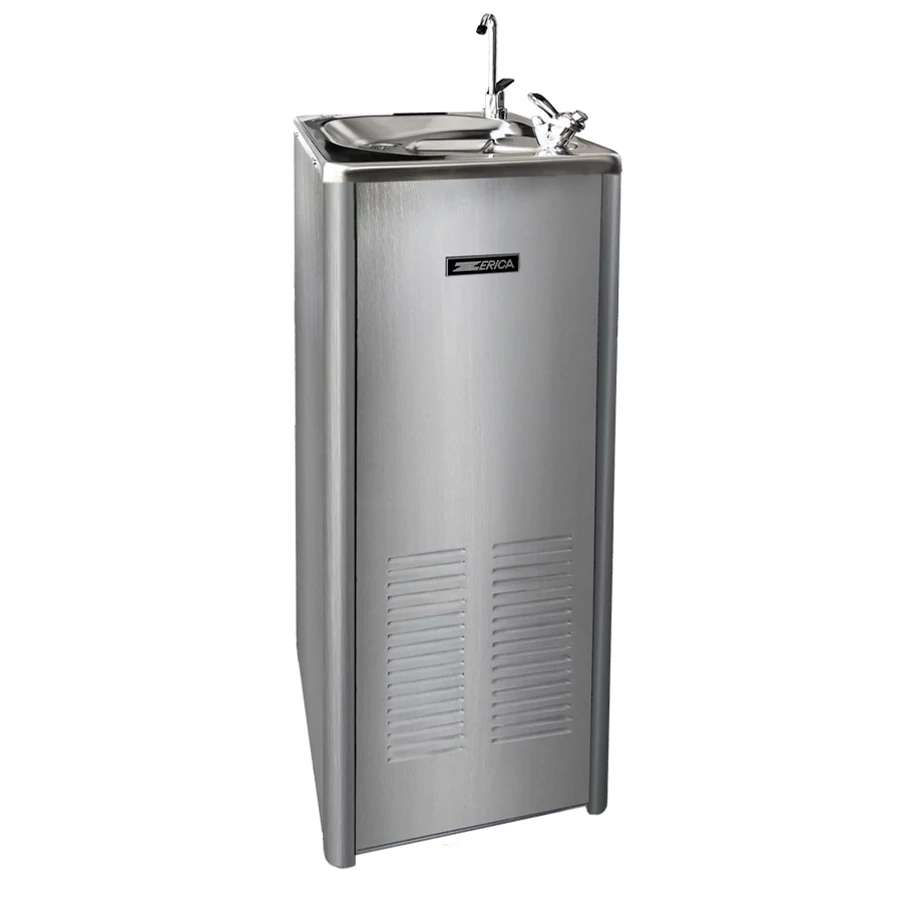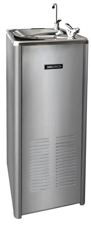 A rozsdamenetes acélból készült, lábon álló beltéri hidegvizes ivókút kétféle adagolócsappal van ellátva. Az egyik a kézi vezérlésű vízsugaras csap, mely gazdaságos vízfelhasználást biztosít, míg a másik csap egy hagyományos kialakítású és működésű hattyúnyakas kifolyóval szerelt csap, mely alkalmas pohár vagy flakon megtöltésére is. A tartozékként rendelhető GCFREL típusú poháradagoló segítségével 2-3 dl-es poharakat is biztosíthat munkatársainak, vendégeinek az ivókút mellé.