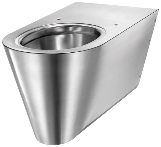 DELABIE vandálbiztos, rozsdamentes acél akadálymentes álló WC-csésze, 700mm kinyúlás, selyem, DEL110700