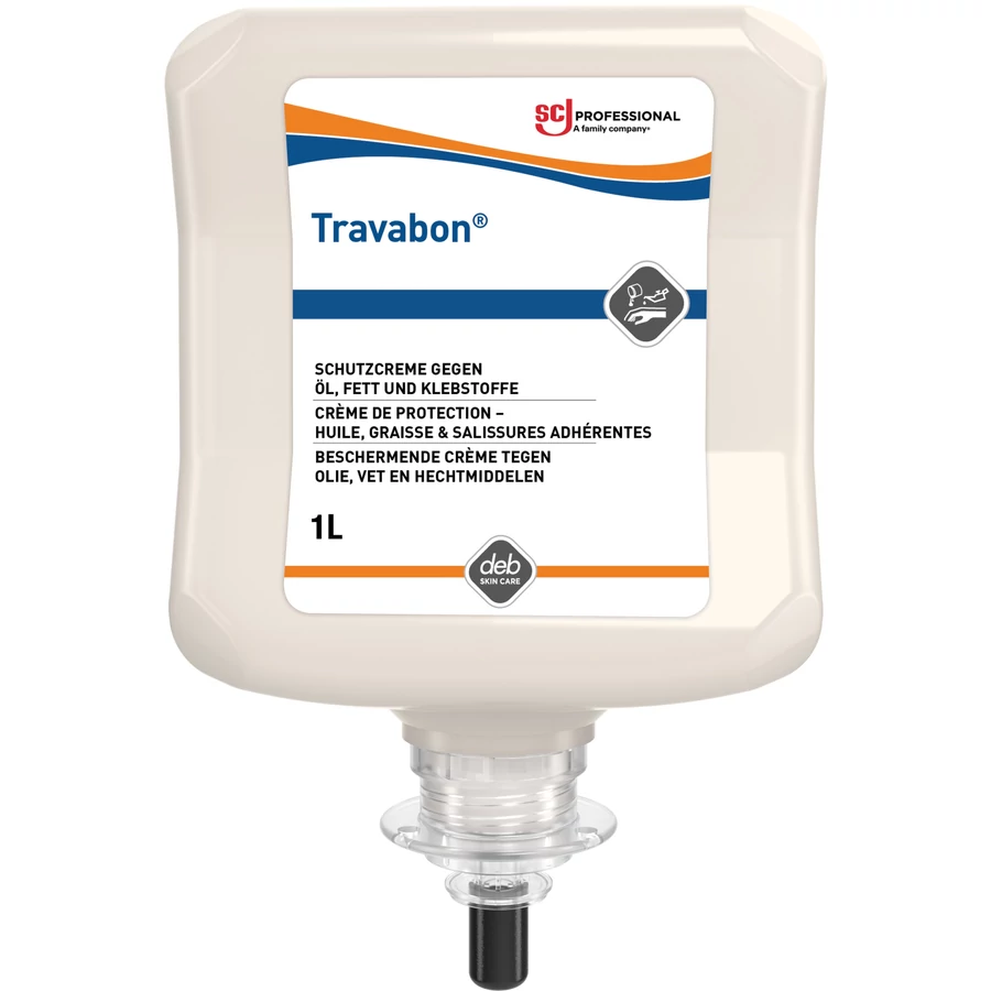A Travabon egy egyedülálló, dupla hatású bőrvédő krém, amelyet kifejezetten ipari munkakörnyezetekhez fejlesztettek ki, ahol a kezek és karok olaj- vagy ragasztó alapú, nem vízoldható anyagokkal (például oldószerekkel, fémfeldolgozó olajokkal vagy mechanikai szennyeződésekkel) érintkeznek, és a kesztyűviselés nem praktikus vagy kivitelezhető. Ez a speciális formula nemcsak védi a bőrt az irritáló anyagoktól, hanem jelentősen megkönnyíti a bőr tisztítását is.
