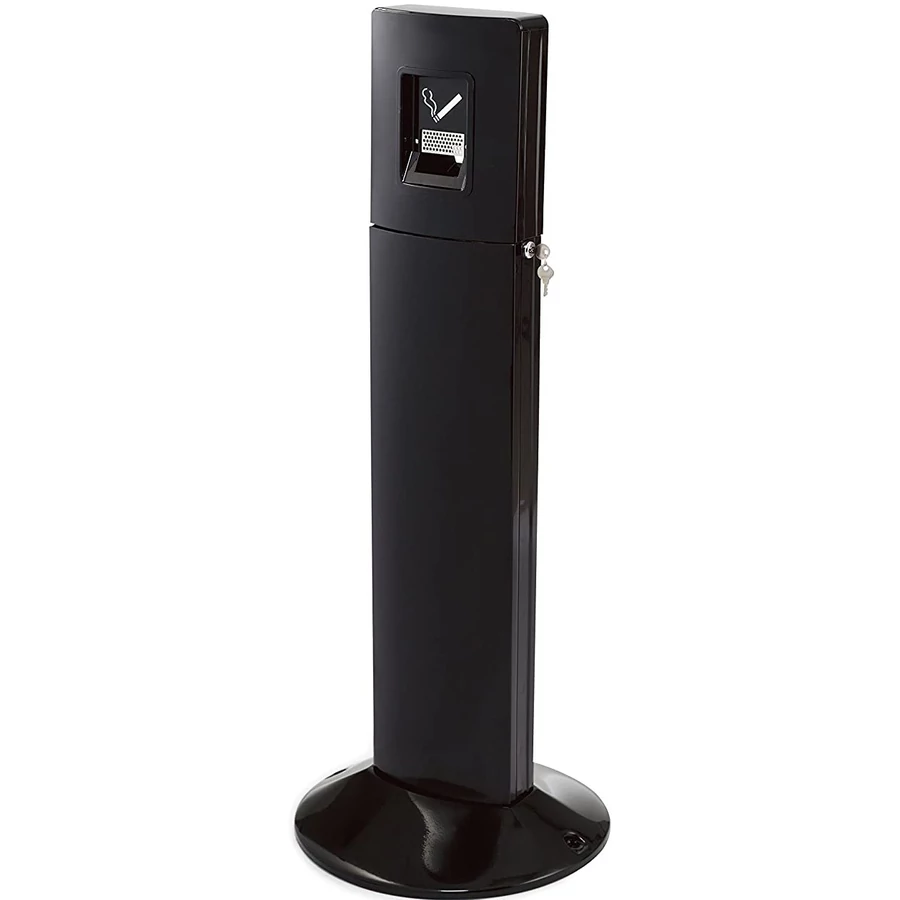 Szabadon álló hamuzó állomás, 6L fém tartály, zárható, alumínium / r.m. acél, ezüst Uni-Koat időjárásálló borítás