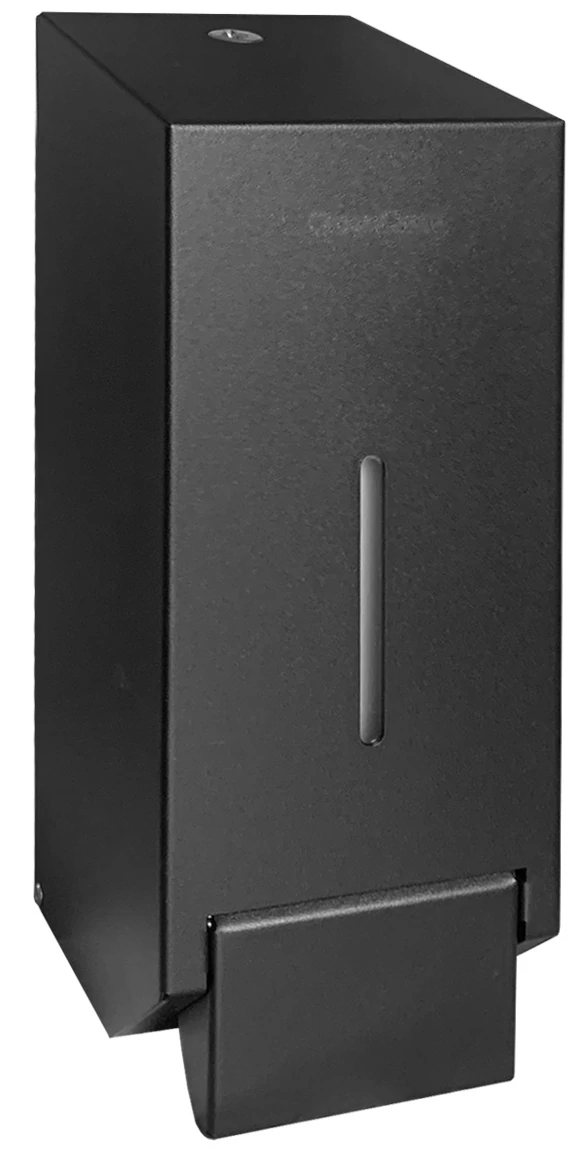 Vandálbiztos nyomógombos habszappan adagoló, zárható, műanyag tartály, acél, matt fekete, 1L